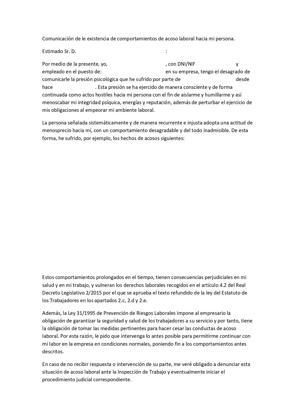 - Registrar las fechas y detalles de cada incidente de acoso.